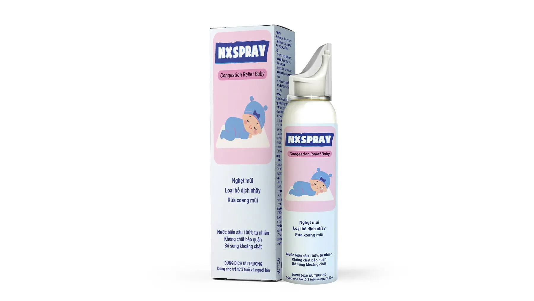 Dung dịch vệ sinh mũi NX Spray Congestion Relief Baby dung tích 100ml. Sản phẩm hỗ trợ vệ sinh khoang mũi, giúp làm sạch nhẹ nhàng và phù hợp cho routine chăm sóc mũi hằng ngày.